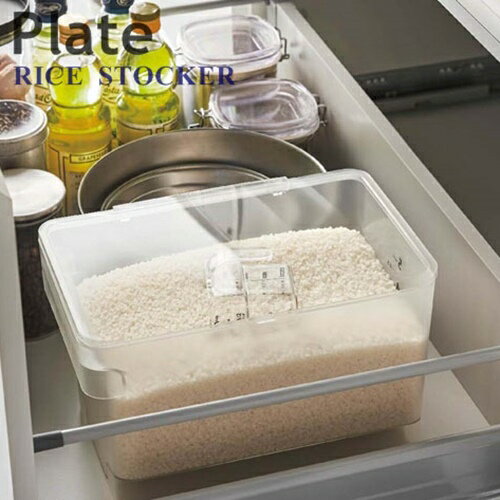 Plate(プレート) 密閉 シンク下米びつ 5kg 計量カップ付 [クリア] RICE STOCKER 米櫃 ライスストッカー 収納 シンク下 透明 密封 キッチン 収納 便利【山崎実業 yamazaki】