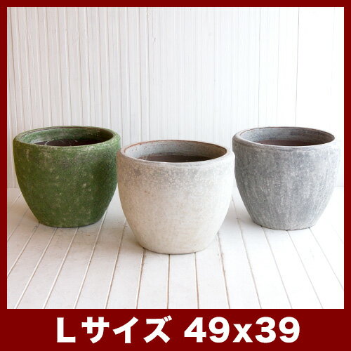 ※底穴あり ◆規格 L16号 / 外寸 φ49cm / 高さ 39cm / 口内寸 41.5cm / 重量 22kg / 容量 49L / 材質 アンティーク加工陶器 ご購入前にお読みください 鉢の特性 / サイズの目安 / 測っている部分 について