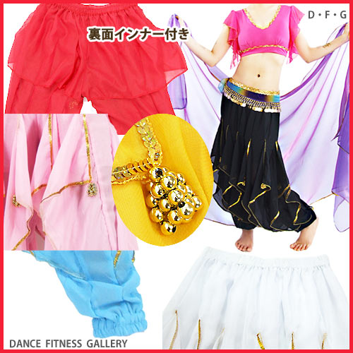 注)パンツのみの販売となります ■フリーサイズ(M〜L対応) ■平置実寸サイズ:股上約32cm/股下約68cm/ウエスト幅約32cm(総ゴムタイプ・目安ウエスト約64cm〜72cm) ■モデルサイズ:身長159cm/ウエスト63cm/ヒップ87cm/股下73cm ■素材:ポリエステル100%・中国製 ■ボトム裾ゴム入り ■インナー付(多少透け感あり) ■ベリーダンスのレッスンやお手持ちのトップスとあわせ衣装としてマルチに活躍! ■ほかにもステージ衣装やダンス衣装としても人気があります 注)送料をなるべくお安くできるよう、小さく梱包して保管・発送されます。