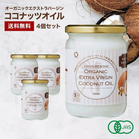 【500mlx4本】安心の有機JAS認定品! ココナッツオイル オーガニック エキストラバージン ココナッツ オイル オーガニックエクストラバージンココナッツオイル2000ml GMP/ダイエット/コールドプレス/無添加/無精製